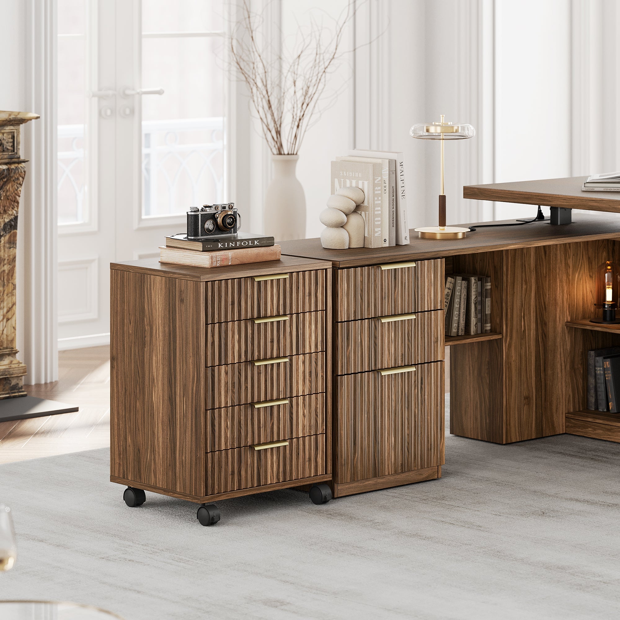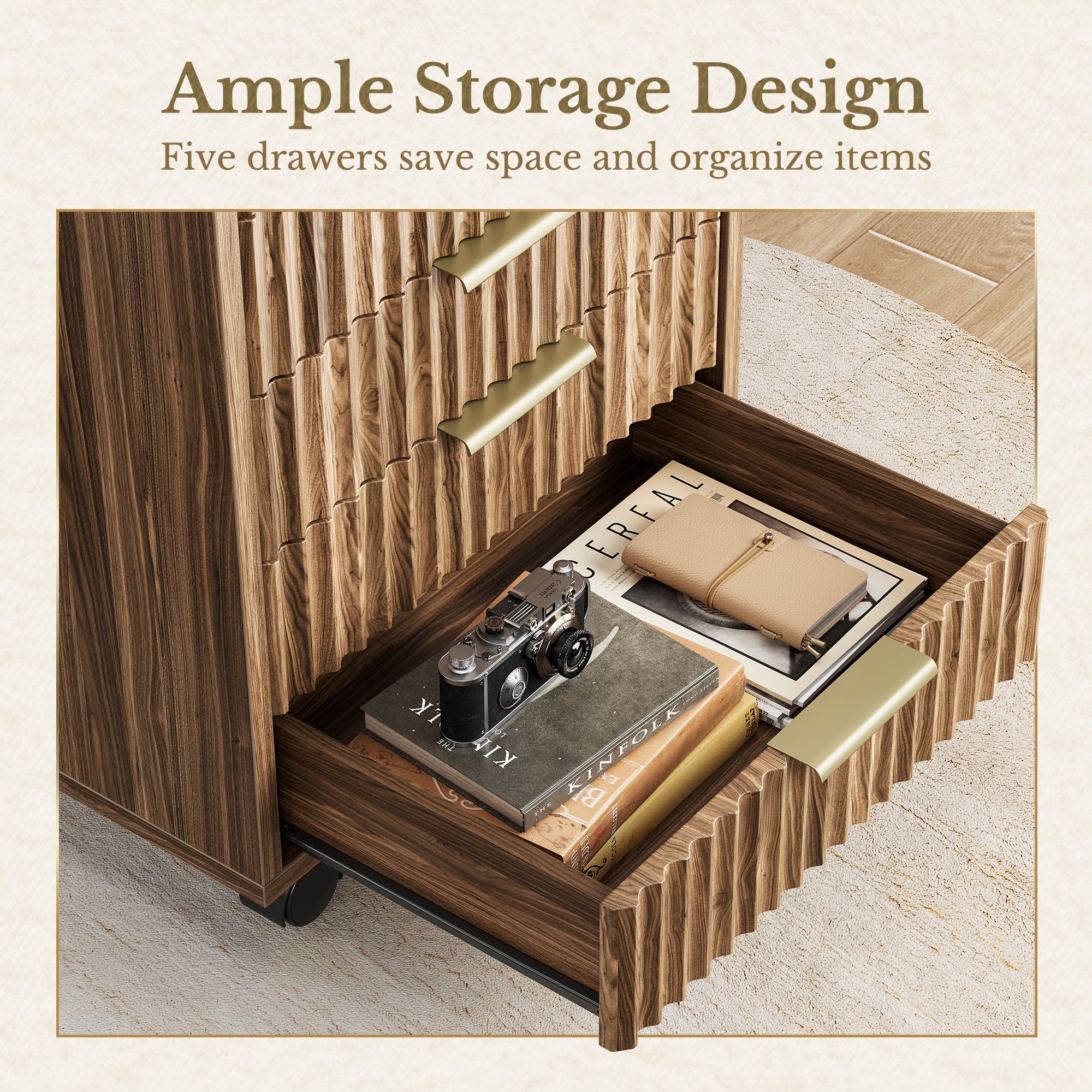 - Fünf-Schubladen-Stauraum: Ordnen Sie Notizbücher, Geräte, Post und Büromaterialien mühelos.