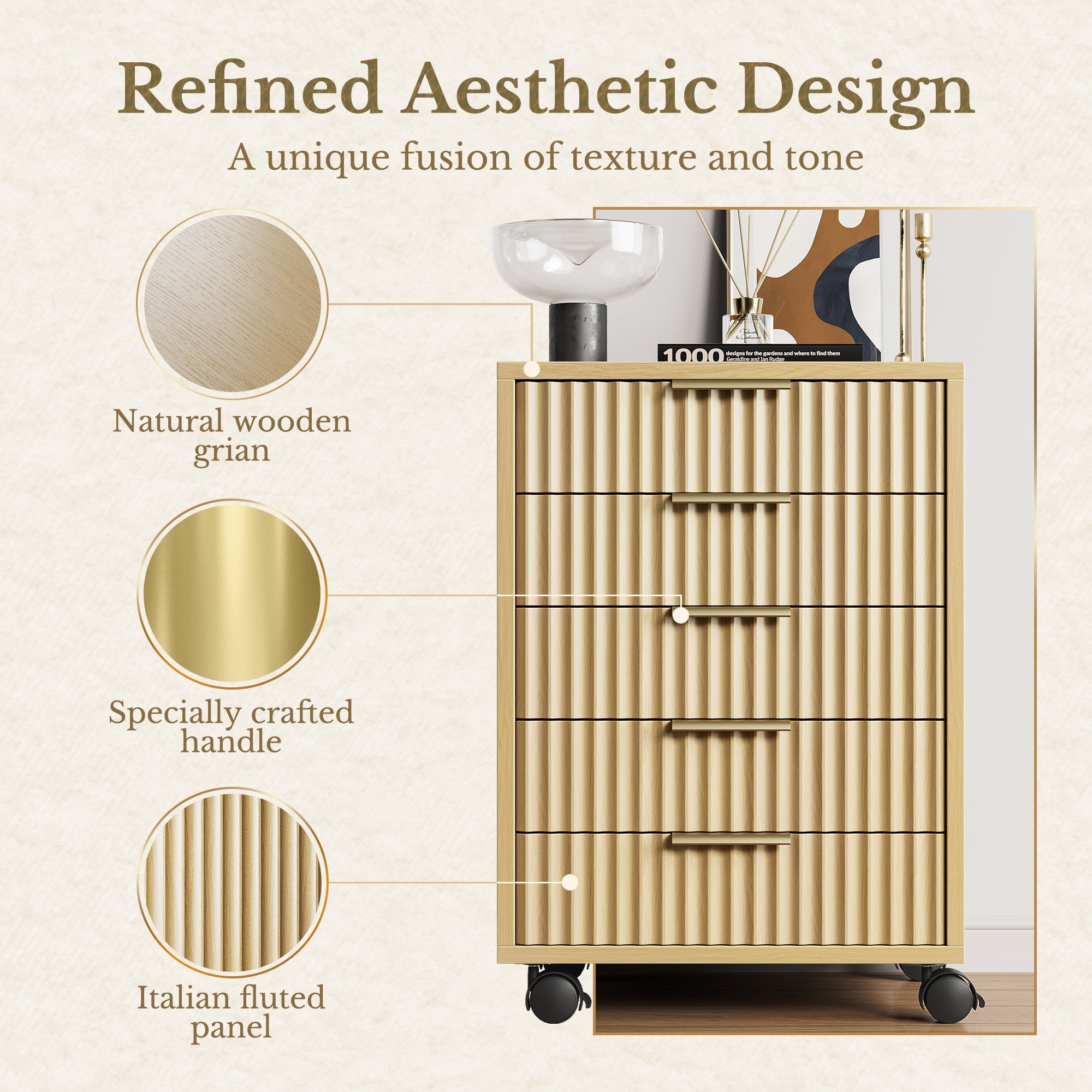 - Esthétique raffinée : façade cannelée italienne avec poignées en métal de qualité supérieure pour rehausser tout espace de travail.