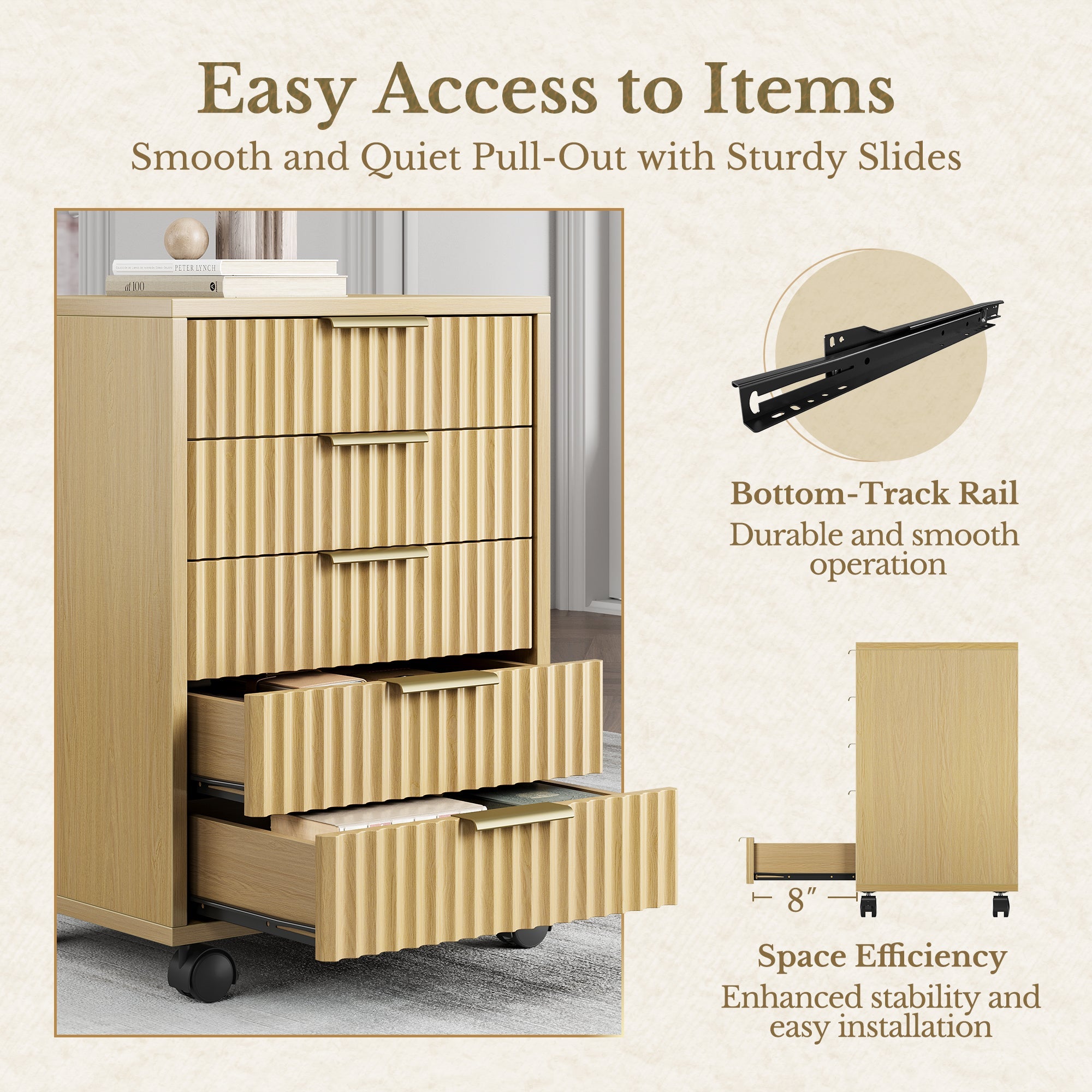 - Construction durable : tiroirs en bois massif et base protectrice pour les exigences quotidiennes de bureau.