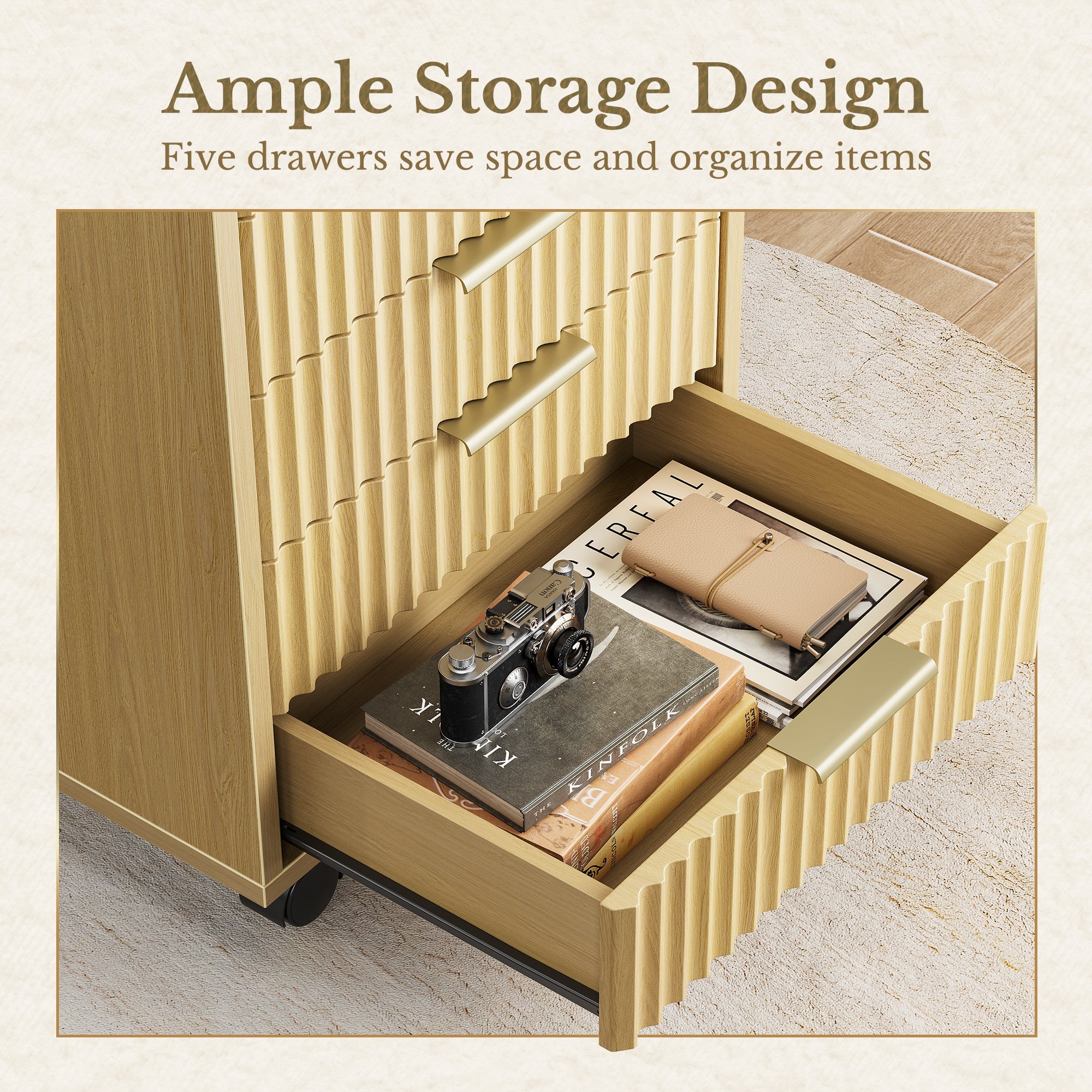 - Rangement à cinq tiroirs : organisez facilement cahiers, gadgets, courrier et fournitures de bureau.