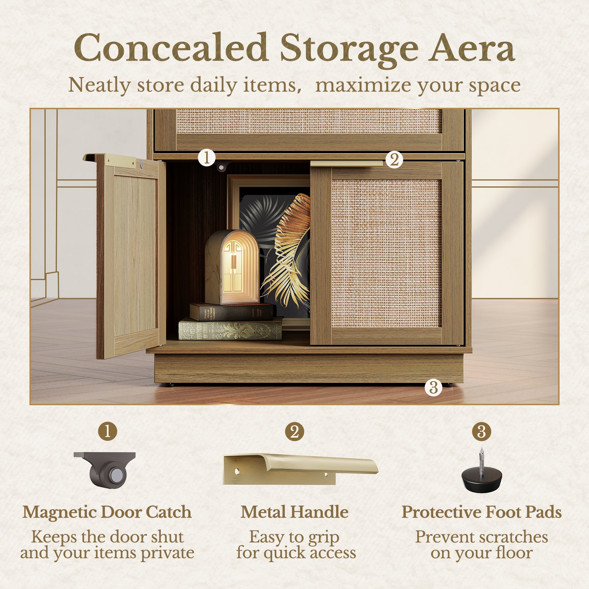 Tuck away books, décor, or daily clutter behind sleek fluted doors. The soft-close magnetic catch, easy-grip handle, and scratch-free foot pads make organization feel effortless and elegant.