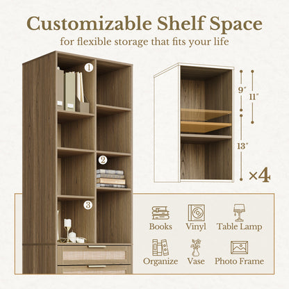 Customize your space with 4 adjustable shelves—choose from 9", 11", or 13" heights to fit everything from books and vinyls to vases and table lamps. Functional, flexible, and made for modern living.