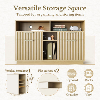 - Spazio di Archiviazione Ampio: Il nostro armadietto dispone di 4 cassetti di diverse dimensioni. Due cassetti inferiori per documenti di formato legale, lettere o A4, cassetti con serratura per proteggere documenti importanti e garantire la privacy. Due cassetti più piccoli per materiali di cancelleria, e le mensole aperte sono ideali per libri o decorazioni. La grande superficie superiore può supportare stampanti, scanner e altri dispositivi, mantenendo l'ambiente ordinato.