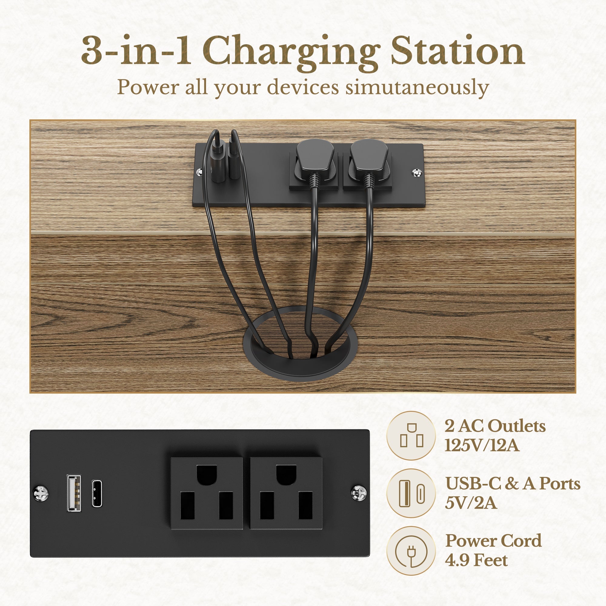 Charge Without the Chase: The built-in power hub (2 outlets, 1 USB-A, 1 USB-C) tucks away hungry cables. Set your phone down – the gentle glow tells you it's charging, while cords disappear into hidden channels.